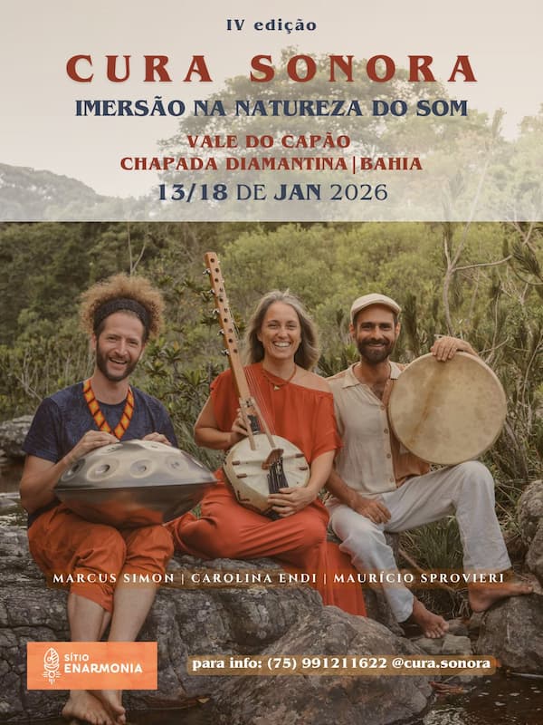 Estaremos em imersão no meio da natureza aconchegante para desvendar junt@s os mistérios e as magias do som e seu poder criativo e terapêutico. Teoria, prática, cuidados sonoros, vivências na natureza, laboratório criativo, interação e prática com a comunidade local, alimentação saudável, rio, bosques e sossego!