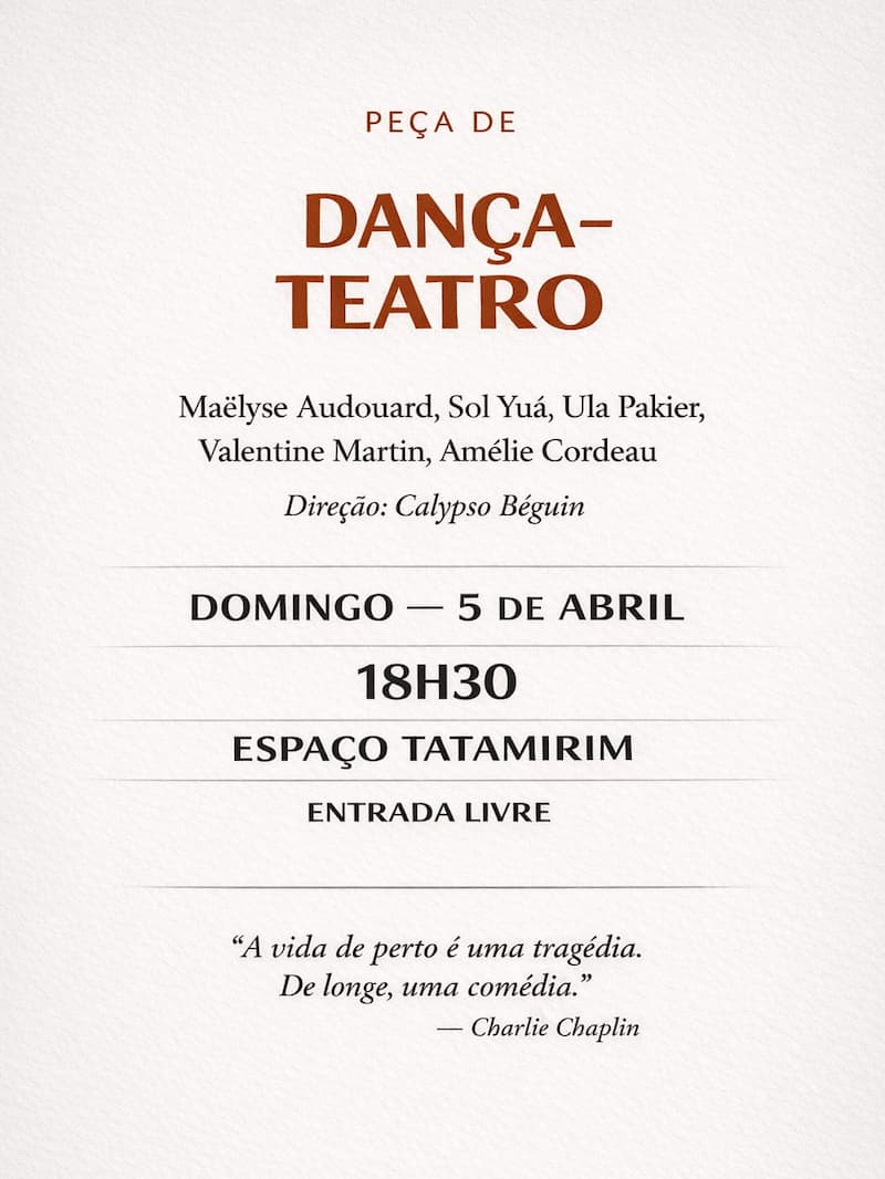 Temos o prazer de convidar vocês para a apresentação da nossa peça de dança-teatro.