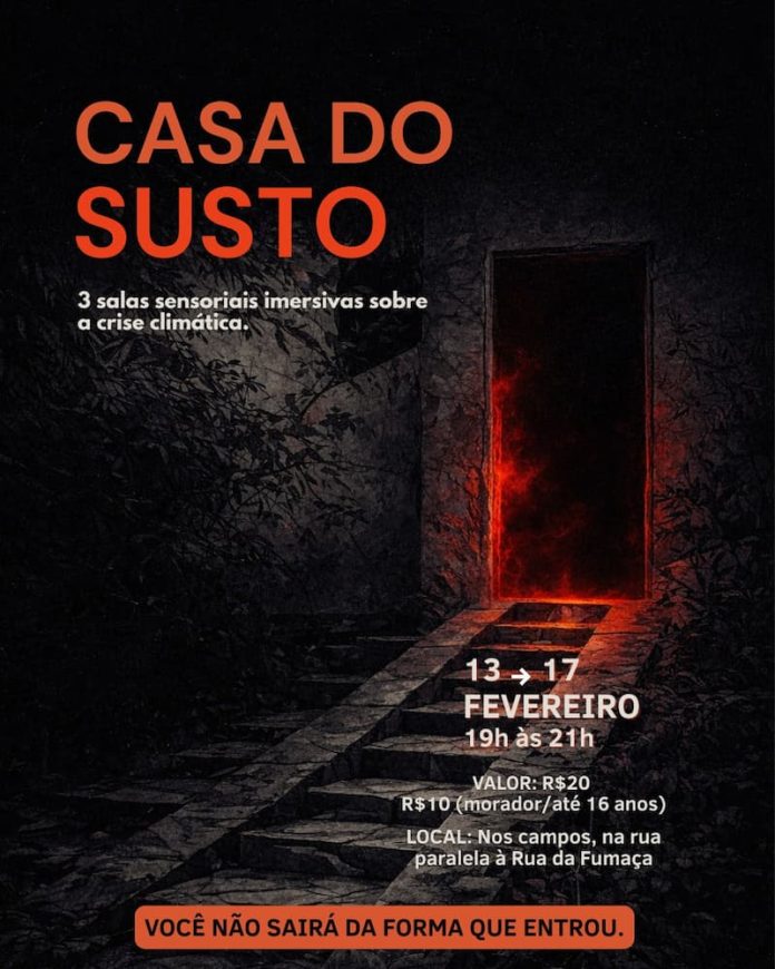 A Casa reabre suas portas durante o Carnaval, apresentando três ambientes temáticos, com experiências imersivas que atravessam o visitante de forma sensorial, simbólica e crítica. A proposta é provocar consciência convidando o público a refletir sobre os impactos ambientais, sociais e culturais da crise climática. Mais do que uma imersão, a Casa de Susto se configura como uma travessia: um convite a entrar em contato com os sinais do nosso tempo e repensar modos de habitar o mundo. Entre. Você não sairá o mesmo.