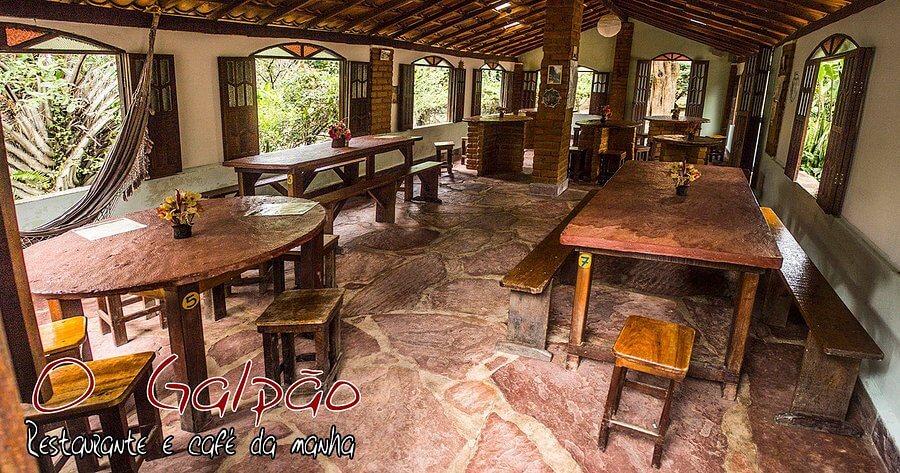 Restaurante e pousada com massas caseiras, lasanha vegetariana e crepes especiais. Ambiente acolhedor para refeições antes ou após trilhas.